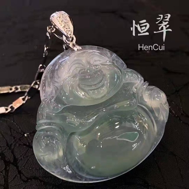 翠挂坠玉佩 天然缅甸冰种黄翡佛宝宝吊坠挂件A货